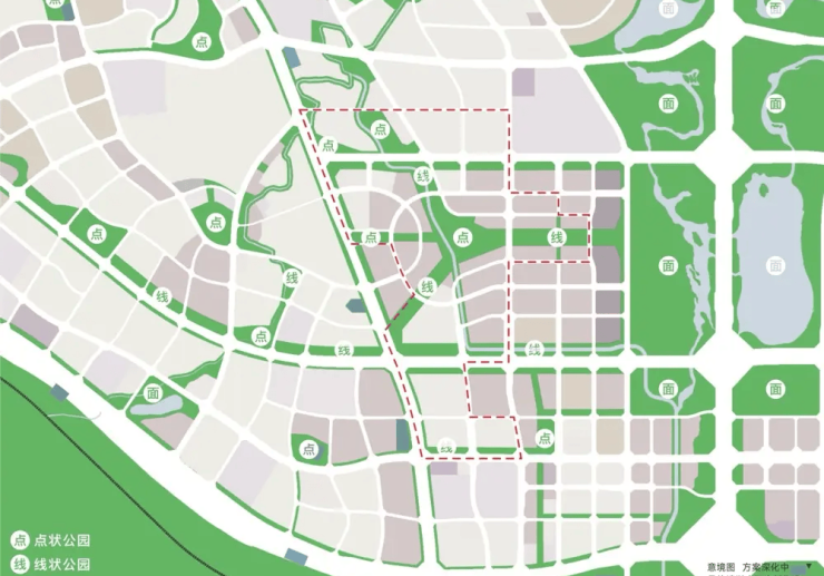 在招商时代公园,参与建筑间生长的点状公园。首先,充分利用城市土地间的“金角银边”规划社交场景公园,让公园城市更具社交属性;其次,充分注重住宅及产业园区内的园林打造,让宅间公园根植于生活肌理。(以上规划及数据来源:《天府中央商务公园+3D融合规划概念》)