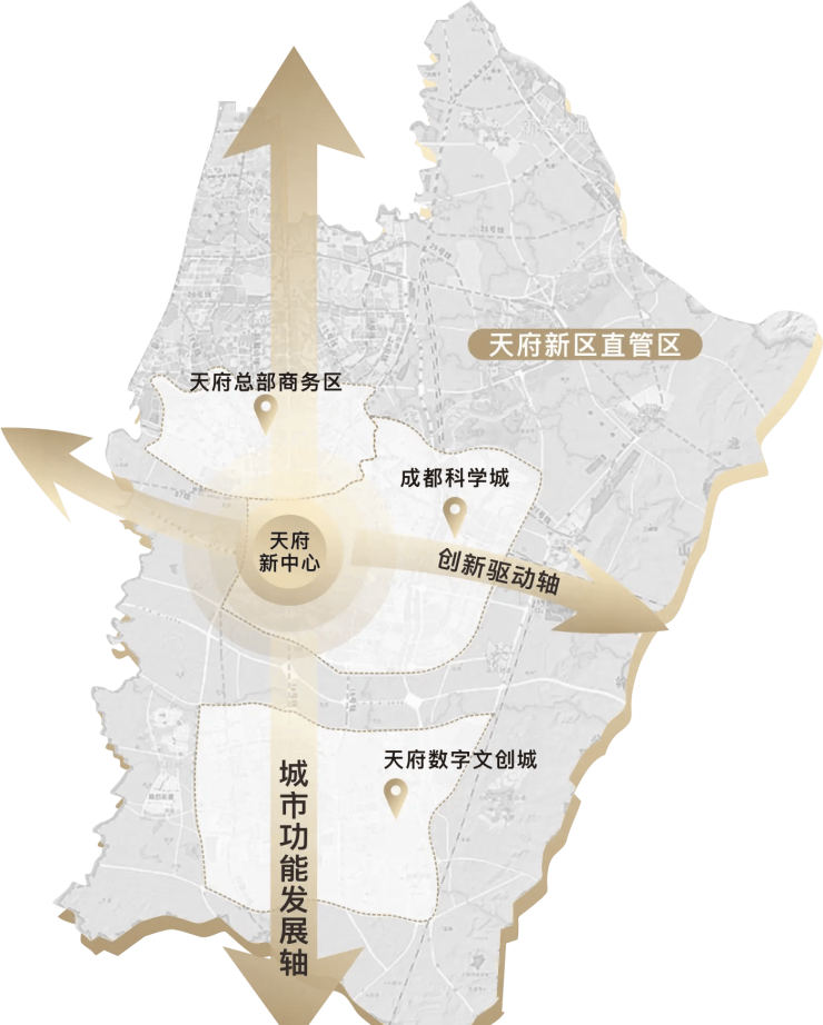 天府新区是由国务院正式授牌的国家级新区,承担着国家重大发展和改革开放战略任务。秉承成都“一城双核”的发展战略,天府新区直管区重点打造三大产业功能区,着力构建“成都未来城市新中心、成渝地区双城经济圈创新极核和开放门户、国家级新区高质量发展样板和中国式现代化公园城市先行区”。
