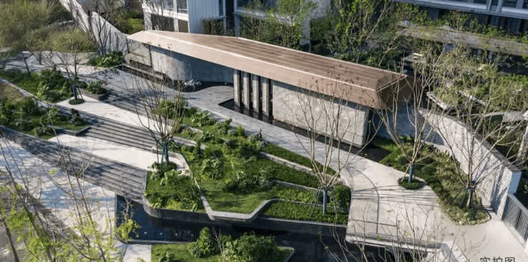 园区景观中轴,指向人字绿廊与西岭雪山,整体以“川西秘境”为出发点,对标“雪山下的公园城市”3D人文生态模板,以园区内外自然高差形成多元场景表达,打造双环两廊、川西十景的园林景致,同时将架空层泛会所与景观体系紧密相融,打造自然会客厅,让川西景致嵌入生活,让度假成为日常。