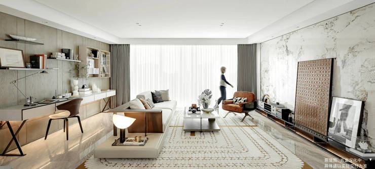 奢尚入户大堂,以现代化风格为底蕴、简约美学质感为基调,将尊贵、私密等理念贯穿整体空间;选用一线品牌电梯,以臻质匠艺承载电梯前厅品质的至高规格;通过精心选材搭配高级色彩运用,打造更具时尚品位感的光幕地库空间,科学规划车行动线,以入微设计营造归家从容感。