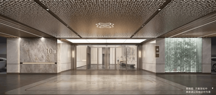 首层入户大堂以超高挑高空间,打造尊崇入户礼序,地库大堂-首层大堂-电梯前室相互通连,精造三重星级精装精装公区及智能归家系统,契合星幕顶车库前导区,造就自然采光与精工艺术的融合。