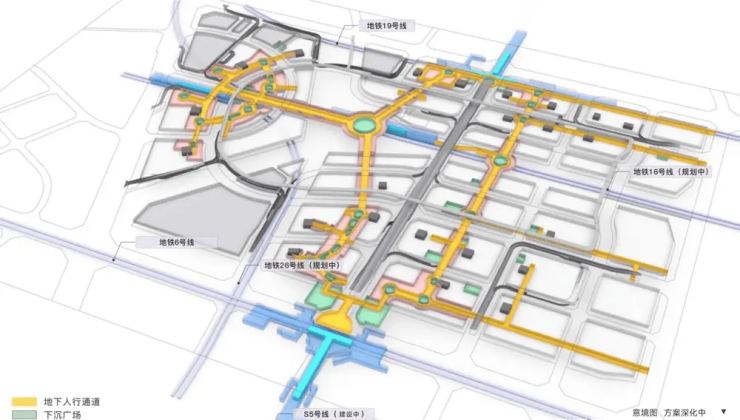 高效互联:地下三层布局【19号线:双机场空港线】、【6号线:主城新区联系线】、【16号线主城新区联系线(规划中)】、【26号线:新区环线(规划中)】、【S5线:成都都市圈眉山线(建设中)】,共5条轨道线路与4大站点系统,同时设置大型城市候机楼,由轨道编制的城市未来新中心枢纽正在逐步形成。