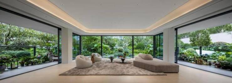 户型覆盖 189-300㎡,首推 227㎡“玉蝶大平层”,主打 “超四代环景院” 设计,270° 全通透采光面、超 31 米 IMAX 级环幕视野、约 65% 极致窗墙比,将景观无限引入室内;