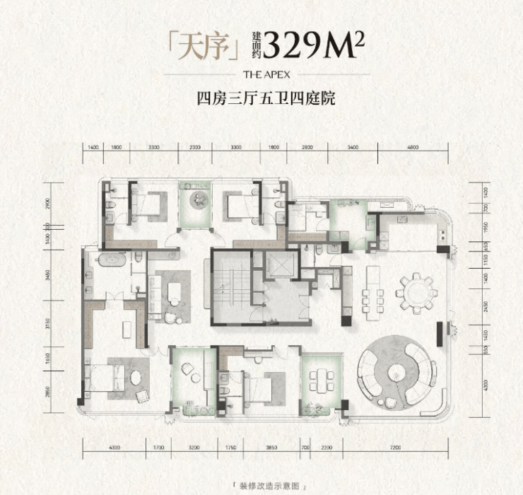 建面约329平套四