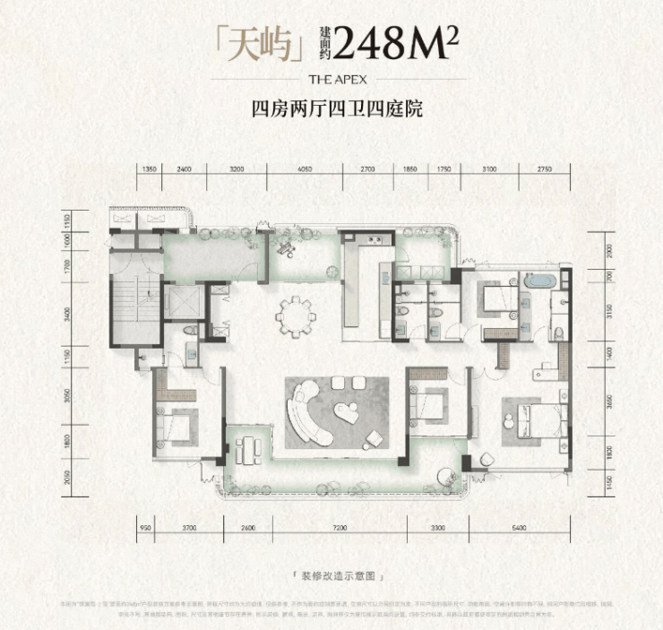 建面约248平套四