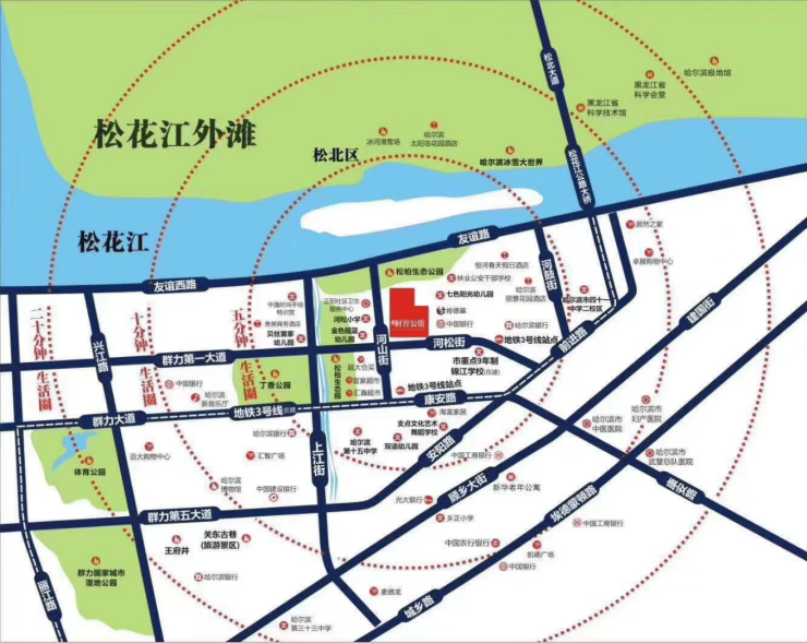 主城区的位置,更是难求,财智公馆距离松花江边步行