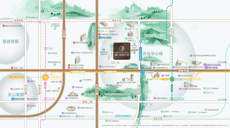 武汉大悦城,距项目约1公里l 首创奥特莱斯,距项目约3公里l 山姆会员店,距项目约3公里| 光谷创新天地商业街(建设中),距项目约3.5公里| 紧邻关山商圈,距项目约6.5公里