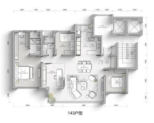 此系列为项目的核心改善产品,覆盖三至四房。143㎡为经典三居,170-198㎡则升级为舒适四居,空间设计强调功能完备与尺度感,尤其适合多代同堂的大家庭,是入驻青羊主城核心区的品质之选。
