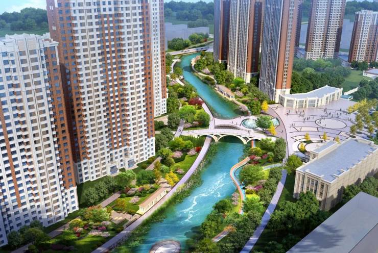 多组团景观模式,著造层次感水系游园景观,江岸两侧搭配林木、花簇等臻稀植被