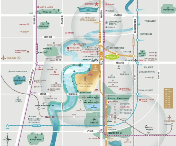 项目落位于成都未来城市新中心——天府新区的核心居住板块,毗邻高端生态住区麓湖。这里不仅是公园城市理念的先行示范区,更汇聚了城市顶级的规划、产业与配套资源,代表着成都高品质居住的未来方向。