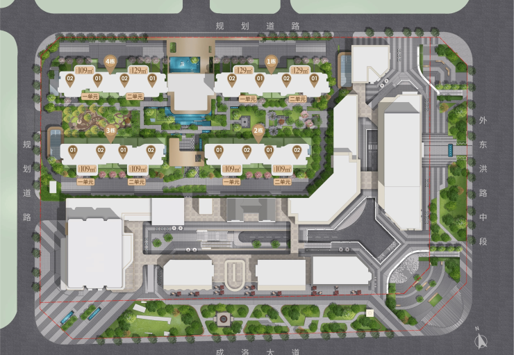 主力户型:109㎡三居/129㎡四居