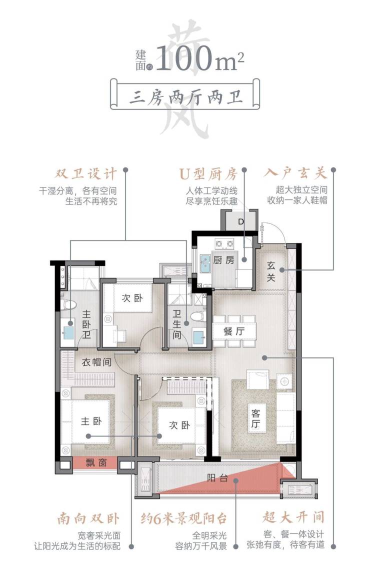 高层:建筑面积约100㎡三室两厅两卫
