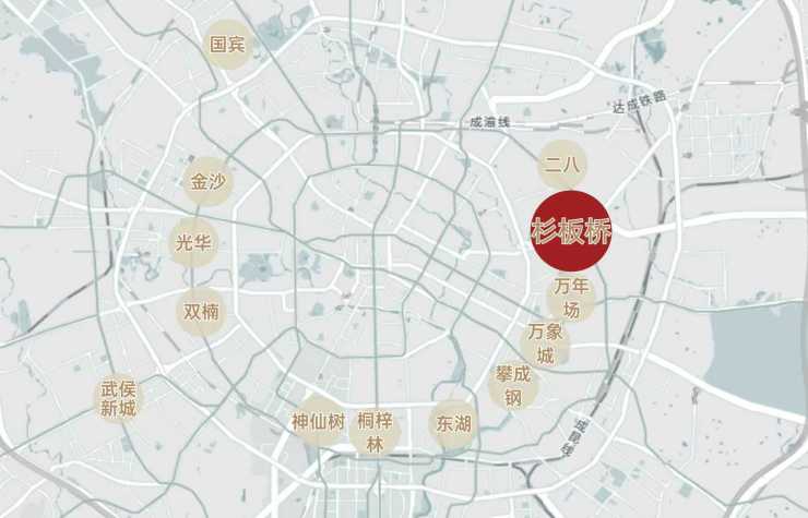 杉板桥商业发力,居住价值跃升:凭借龙湖、万科、招商、东郊记忆等商业、文创配套升级,获“国际杉”美誉,出彩的城市界面、潮流生活方式和资源密度,在成都视野内名列前茅,获购房者青睐。
