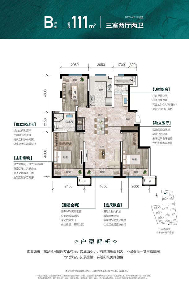 南北通透,全明户型,远超同等面积户型的空间利用率,超多拓展面积和更多收纳空间,可满足从二人世界、三口之家到二孩家庭、三代同堂等多重场景的全龄居住需求。