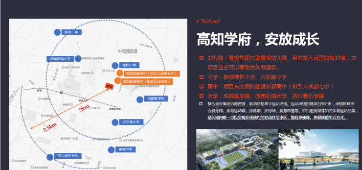 医疗资源:新都区妇幼保健院/人民医院,1.5公里直达规划中的成都医学院附属医院(总建面57.8万㎡现代化医疗中心)