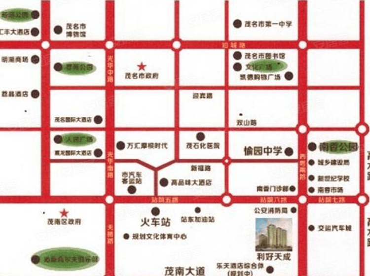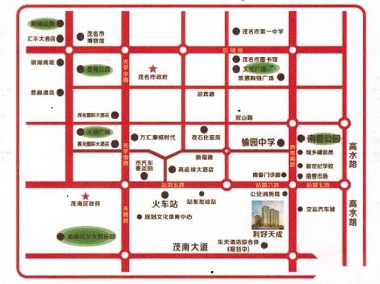 利好天成位于茂南区市西粤南路粤华小区,规划用地21172.4平方米,建筑面积90289.9平方米。规划区外围的城市道路主要有南侧、北侧、西侧各1条街坊路(东面为城市干道西粤南路,西侧邻政府储备地块)。利好天成南侧住宅为18层,北侧为25层,沿街二层设置商铺。结合功能划分,在商铺屋顶形成大面积的绿化景观,从而限度的优化了居住环境。 利好天成,位于西粤大道与站前路交汇的黄金交通枢纽。西粤南路纵南连北,北连市区中心,南连开发区(高铁商圈),目前西粤南路开通在即,商圈全面升级! 项目占地2万㎡,以欧陆异域风情特色打造低密度舒适生活社区,配备8000㎡中心欧陆水景园林,茂名首创叠水台阶式园林,5栋高层建筑呈半围合式布局,通风采光俱佳。打造122-161㎡三房至五房纯粹舒适户型,正南正北,户户配置low-e双层隔音环保玻璃,彰显人性化品质配套; 项目周边配套完善,3分钟直达未来高铁站、茂名交委汽车站以及南香市场、南香公园、新世纪学校、愉园中学、建设银行等,快速到达沃尔玛、文化广场、电影院,尽享生活便利!