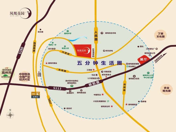 项目位于镇中心,所以我们周边配套已经十分完善:600米范围内有谢鸡镇综合市场、旺角酒家、药店、农信社、农行、邮政储蓄银行、金惠超市、谢鸡医院、汽车客运站、加油站、市政府行政服务中心等醇熟配套一应俱全,形成一个以凤凰花园为中心的5分钟的生活圈,衣、食、住、行样样俱全。在此居住,享受品质生活。