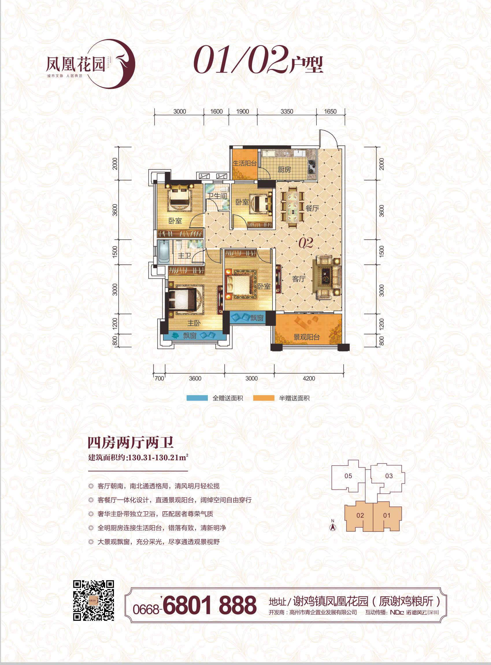 凤凰花园位于谢鸡镇中心,即原谢鸡粮所旧址。周边学府环绕,幼儿园、小学、中学齐备。凤凰花园是谢鸡排名前列也是目前仅有的电梯商品房住宅楼,也是整个谢鸡高大的建筑。在高楼层可以俯瞰整个谢鸡圩,美丽风光尽收眼底。南北通透的方正大四房,配合大阳台和全景飘窗,无论通风、采光还是视野都是谢鸡少有的。同时还私享谢鸡仅有的710㎡空中花园,配套660㎡商业综合体。凤凰花园为您提供谢鸡最一流的高品质生活。如此齐全便利的配套仅售四千零元每平方米。