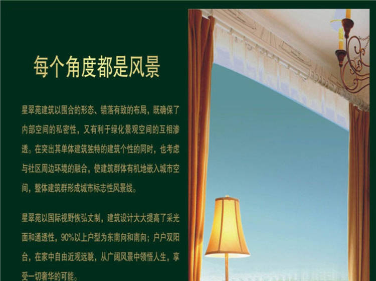 星翠苑处在西粤路最为优越的地段,紧邻沃尔玛商圈。萃取一个城市的精华配套,出则繁华、入则静谧。