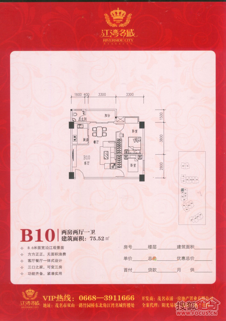 江湾名城背靠岭咀山,面向小东江,背山面水,聚风藏气,风水优质。