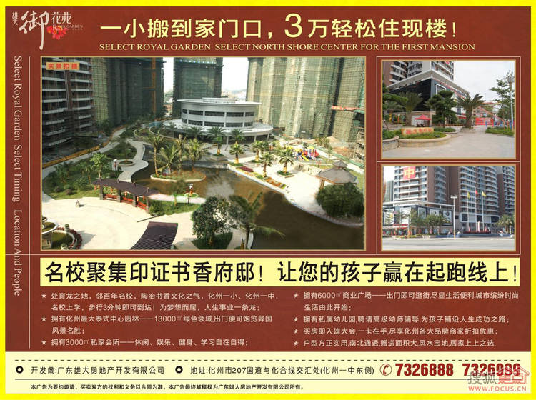 崛起的北岸,正是一场刚刚开始的财富盛宴,雄大御花苑占据较佳地段优势,精心为化州名流鼎造先进价值居所,作为北岸中心的排名前列书香府邸项目,雄大御花苑增值潜力雄厚,是成功人士宜居宜投资的优质选择。