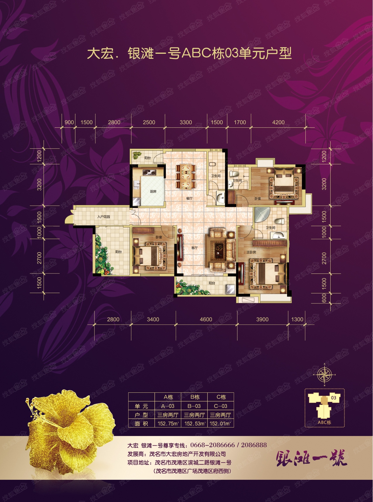 3室2厅2卫-ABC栋01单元户型