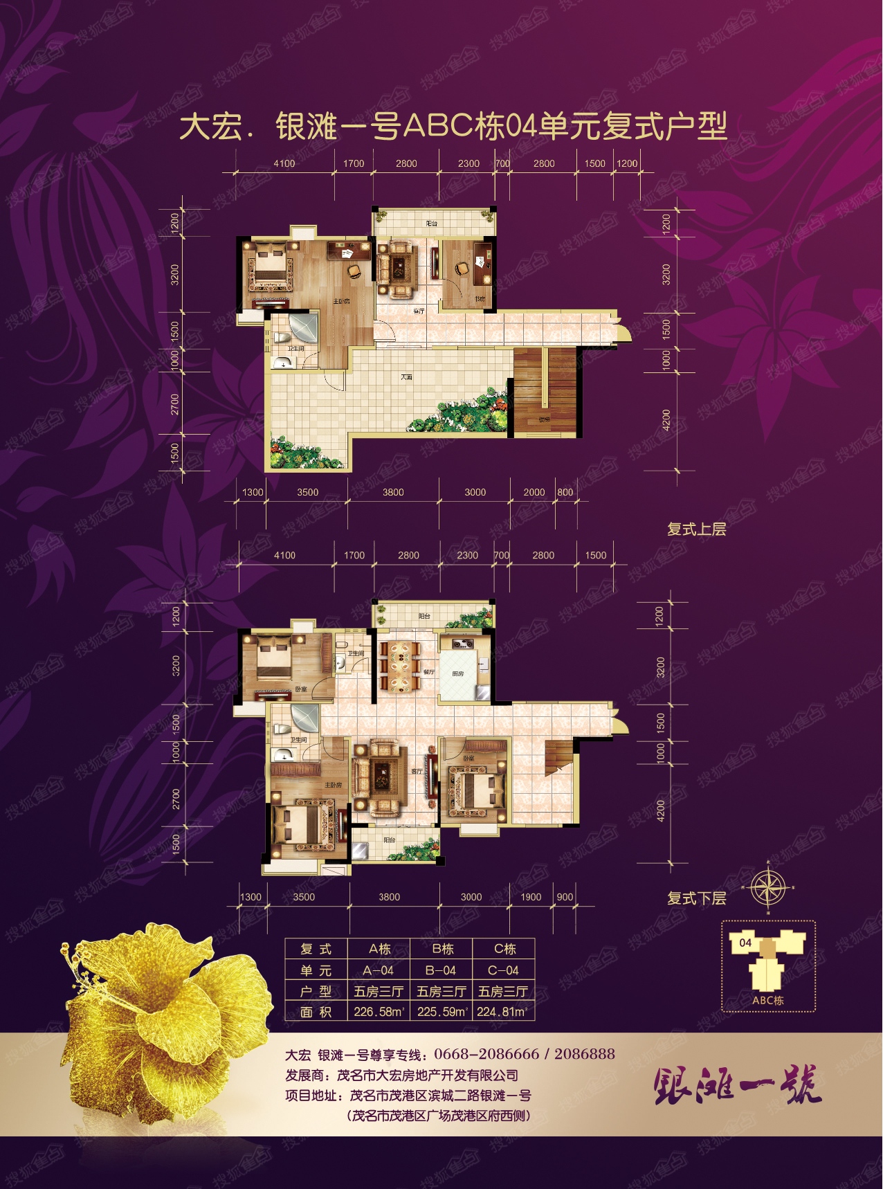 5室3厅3卫-银滩1号ABC栋04单元复式户型