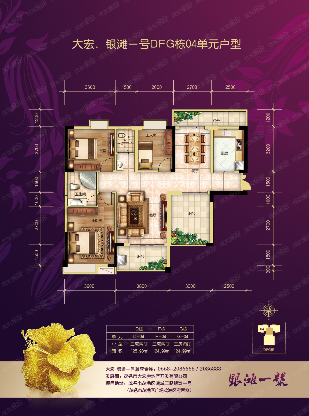 3室2厅2卫-银滩1号DFG栋04单元户型