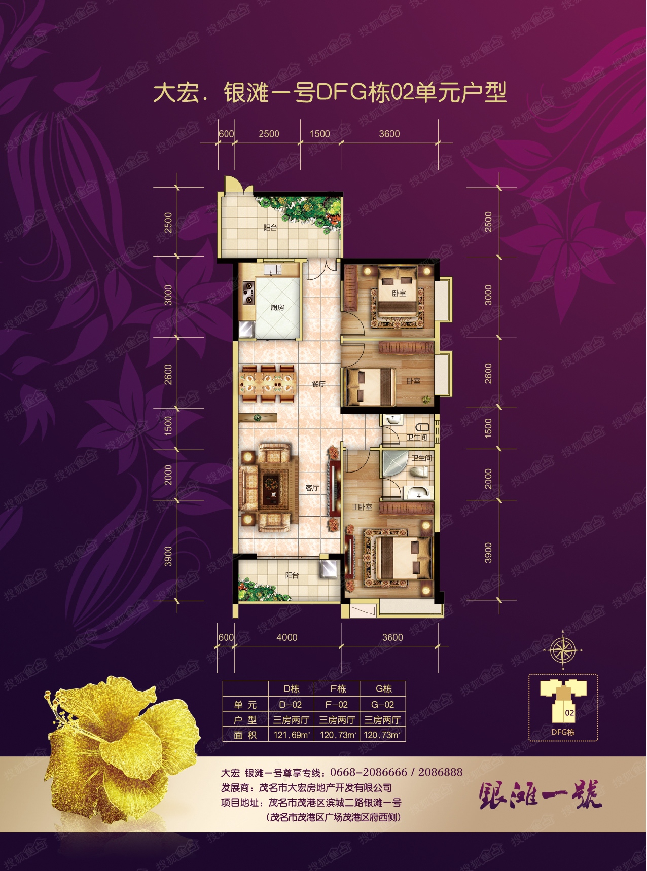 3室2厅2卫-银滩1号DFG栋02单元户型