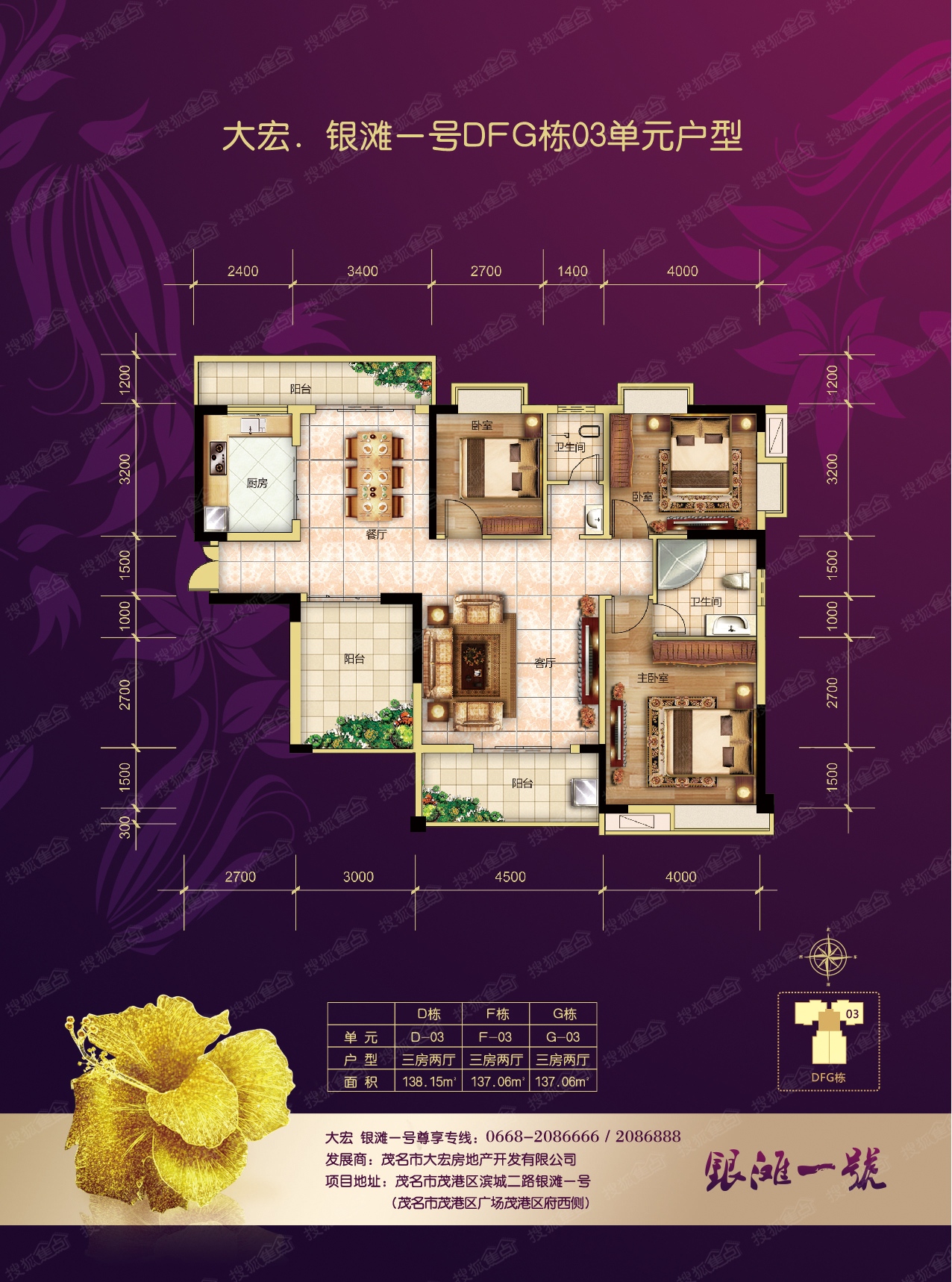 3室2厅2卫-银滩1号DFG栋03单元户型