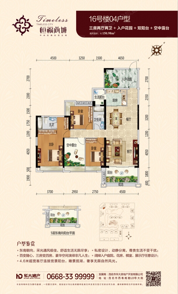 恒福尚城位于战前七路与西粤南路交汇处,项目由茂名市华大房地产开发有限公司开发,广州智海建筑设计有限公司提供建筑设计,广州澳园景观设计设计有限公司提供园林设计。恒福尚城占地面积90000平方米,建筑面积420000平方米,绿化率为41%。恒福尚城建筑设计秉承100%简欧建筑阔美学,沿袭经典与底蕴,竭力为茂名市民提供优质、优美的居住环境。