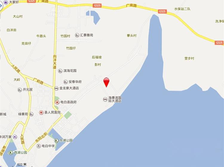 位于水东镇海滨大道126号,与海景湾国际大酒店、电白县第一中学相邻,地处环水东湾黄金地理位置。