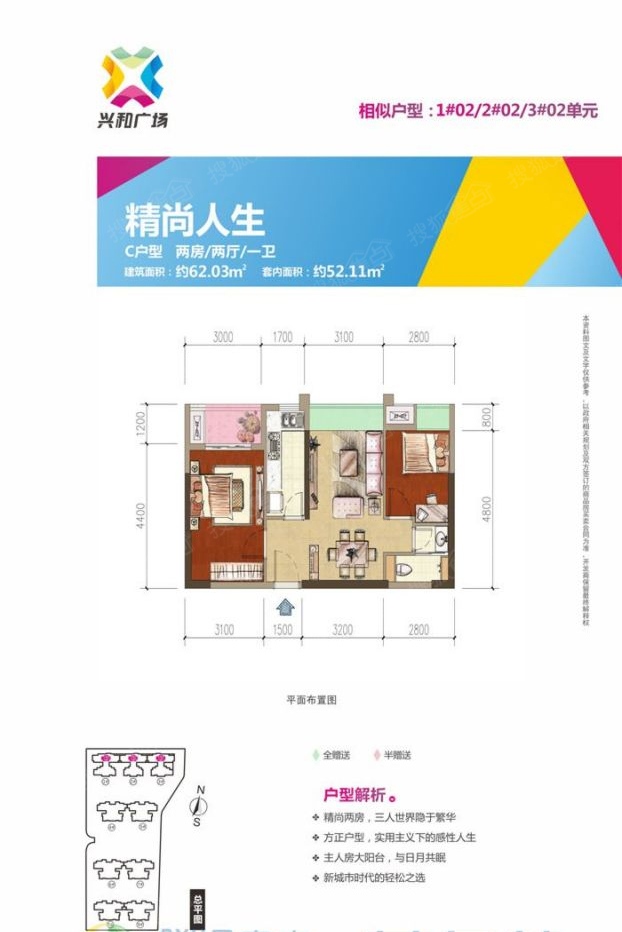 2室2厅1卫-C户型62.03㎡+两房两厅一卫