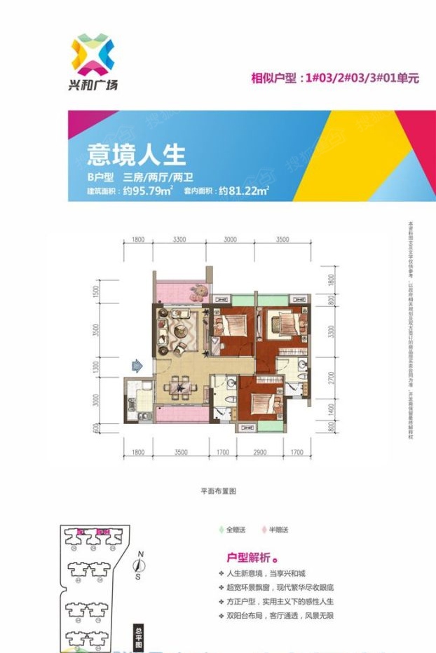 3室2厅2卫-B户型95.79㎡+三房两厅两卫