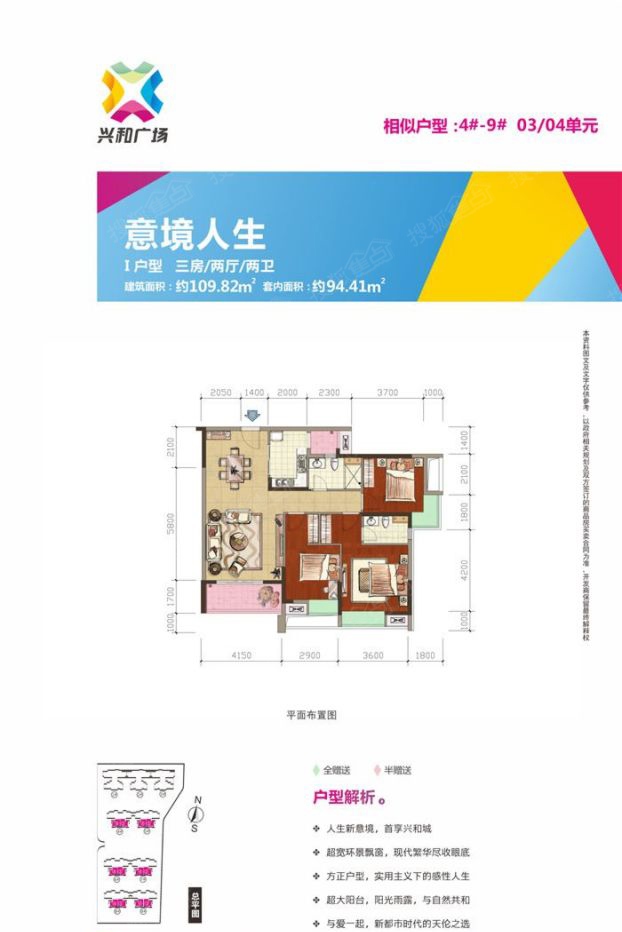 3室2厅2卫-I户型109.82㎡+三房两厅两卫