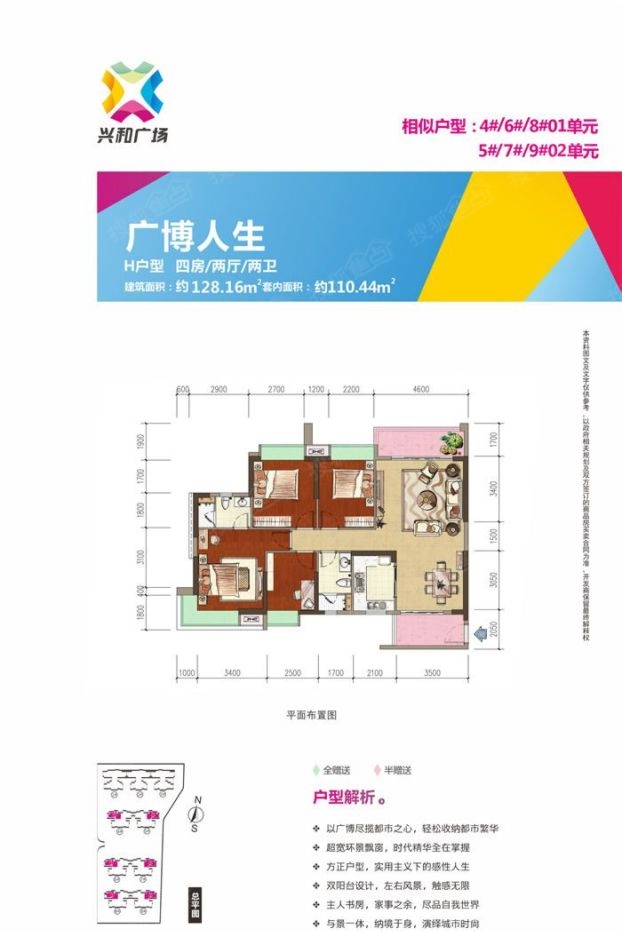 4室2厅2卫-H户型128.16㎡+四房两厅两卫
