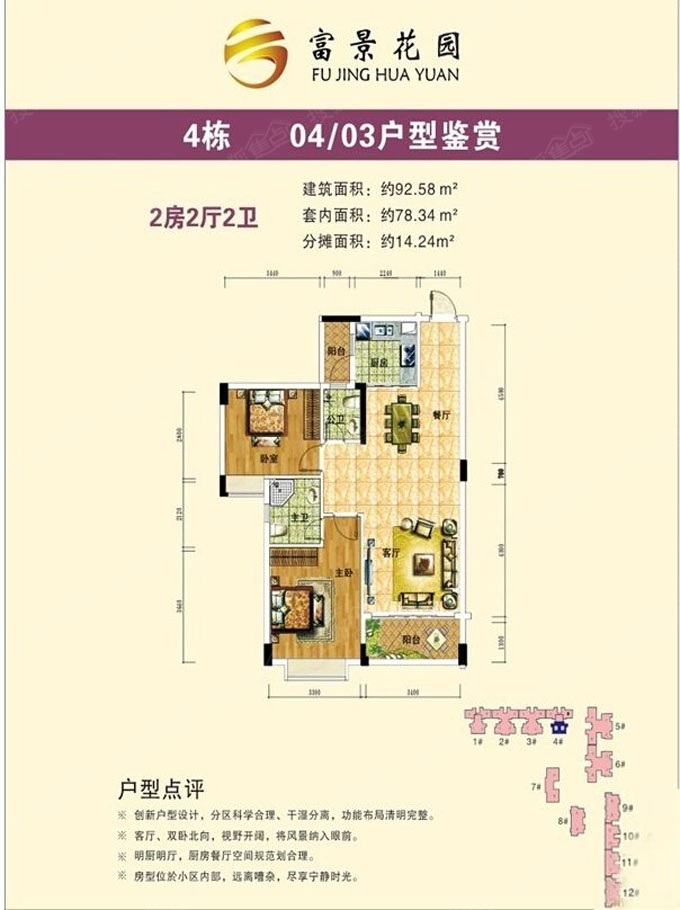 富景花园位据岭门镇中心腹地,岭门排名前列大型电梯花园社区采用地下室停车场设计,实行人车分流、周边交通便捷,配套齐全。商业、学校、超市、银行、娱乐应有尽有,楼下沿街物设商业街,为小区业主在生活购物上提供更为便捷的服务。小区内配有国际双语幼儿园、景观湖、会所、棋牌休闲室、老人休闲活动中心、儿童乐园、中心广场、超市、排名前列配套完善商住小区。