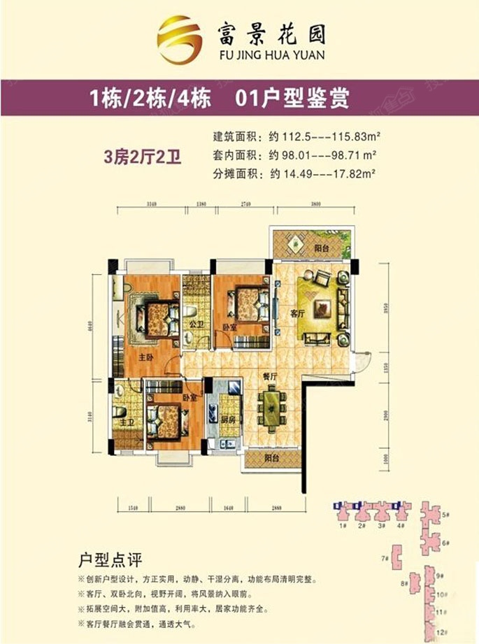 3室2厅2卫-1/2/4栋01户型112.5m²
