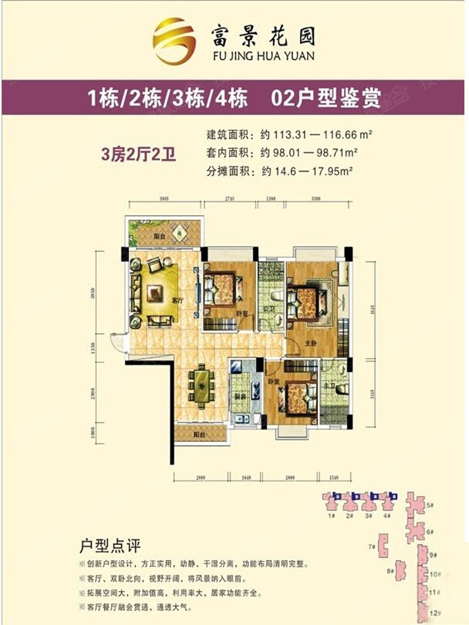 3室2厅2卫-1/2/3/4栋02户型 113.31m²