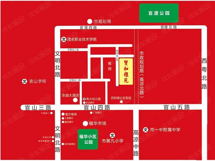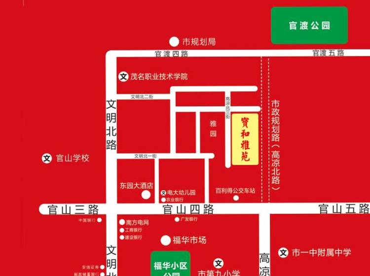宝和雅苑毗邻市一中附属中学,第九小学,官山学校,电大幼儿园等学校周边。沃尔玛商业广场,文化广场,官渡公园,福华市场,茂名图书馆等商业配套醇熟,生活便利。