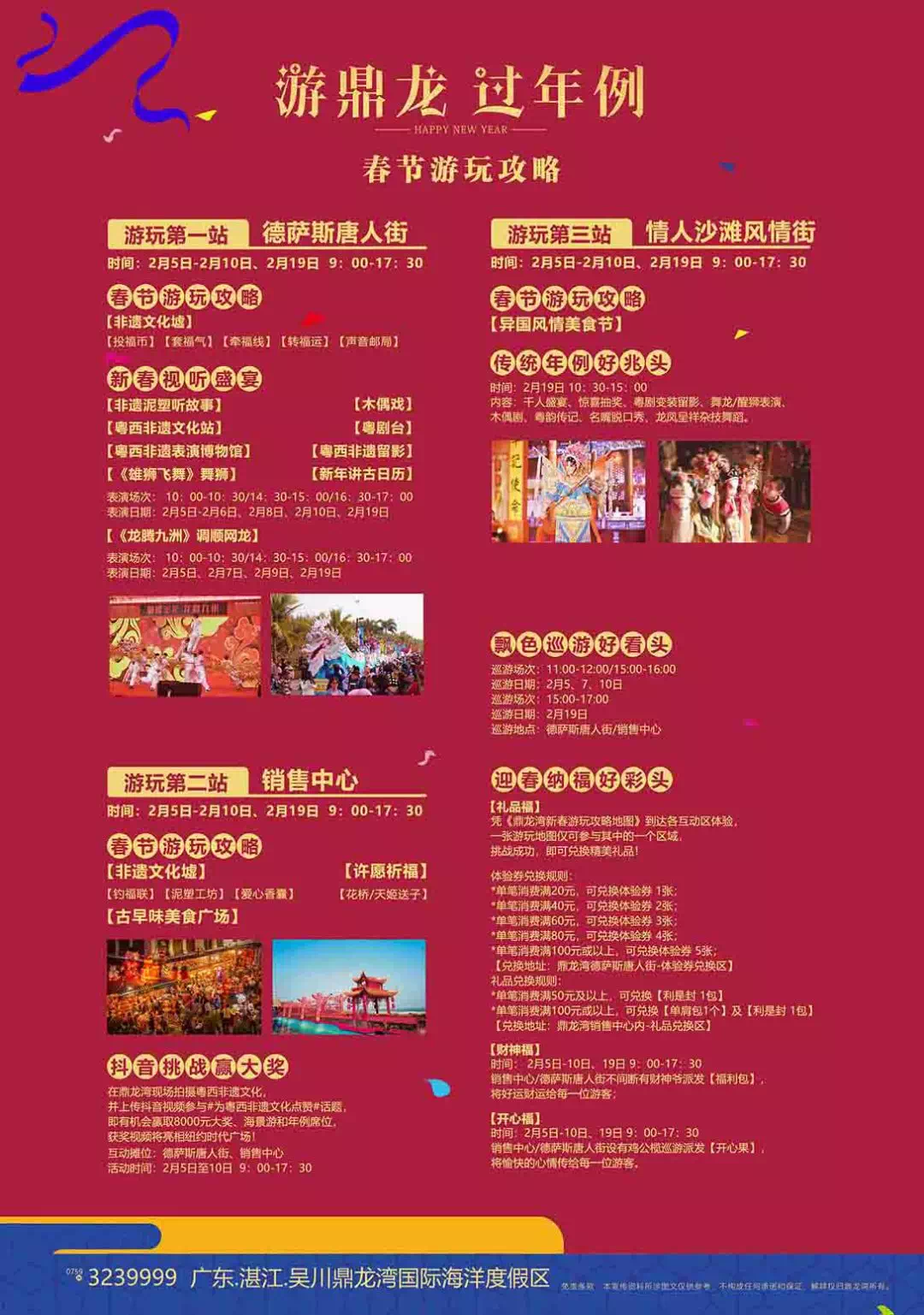 鼎龙湾第四届粤西非遗暨年例文化节即将盛启,鼎龙集团让粤西文化走向国际,目的在于为了更好地传承粤西传统文化,让年例节从一场地区性的祭祀盛典,走向广东、走向全国,甚至走向国际,成为粤西传统文化的标识。