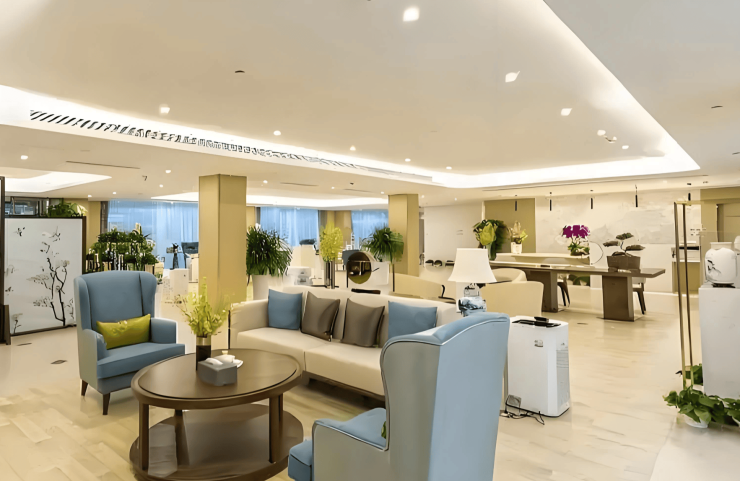 社区总建筑面积3.9万平方米,规划床位589张,采用“垂直养老综合体”设计,地上22层、地下3层。居住单元分设活力生活区、专业照护区与认知症专区三大板块:6-18层为居住单元,涵盖单人间(35-50㎡)、双人间(40-60㎡)及家庭套房(70-120㎡),所有户型南向采光,配备地暖、新风系统及智能护理床;19-22层为高端康养区,增设私人医生、中医理疗、水疗SPA等定制化服务。公共区域采用防滑地胶、圆角家具、无高差地面设计,走廊宽度达1.8米并配备双层扶手,卫浴间配置恒温淋浴座椅及拉绳式紧急呼叫装置,全域通道宽度≥1.8米满足双轮椅并行。