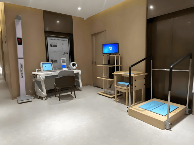 社区总建筑面积2.75万平方米,地上10层(局部11层)、地下1层,规划216个房间、304张床位,形成“前院-中庭-后园”三进式布局。公共区域设有800㎡文化活动中心、300㎡康复花园、200㎡阳光茶室及500㎡环形健康步道,沿途配备智能心率监测设备。医疗康复中心与国医馆功能分区明确,配备DR数字X光机、全自动生化分析仪及下肢康复机器人,形成“医疗-康复-护理”全流程管理体系。走廊宽度达1.8米并配备双层扶手,卫浴间采用R13级防滑地胶与恒温淋浴座椅,全域通道满足双轮椅并行需求。