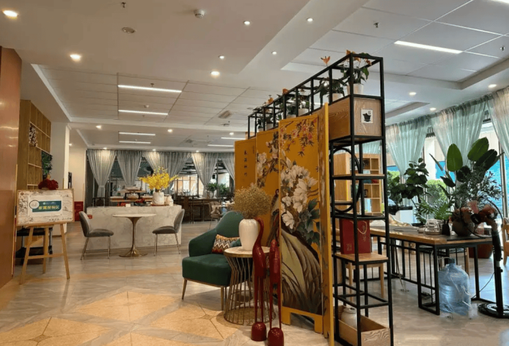 院内设施以“全龄适配、功能复合”为原则,实现实用与休闲的有机融合。居住区域配备毫米波雷达跌倒监测、床头智能手环等智慧设备,保障居住安全;公共区域划分清晰,涵盖影视厅、棋牌室、茶艺室、手工艺室等多元功能空间,满足长者日常文娱需求。1500平方米的空中休闲农场种植各类植物,为长者提供亲近自然的户外活动场所,丰富日常休闲体验。