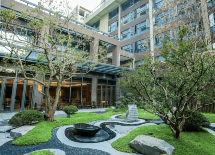 公共空间:1500平方米多功能活动区涵盖书画室、棋牌室、舞蹈室等,屋顶花园种植岭南特色植物,设置园艺疗愈区与观景平台,四季流转中感受自然之美。