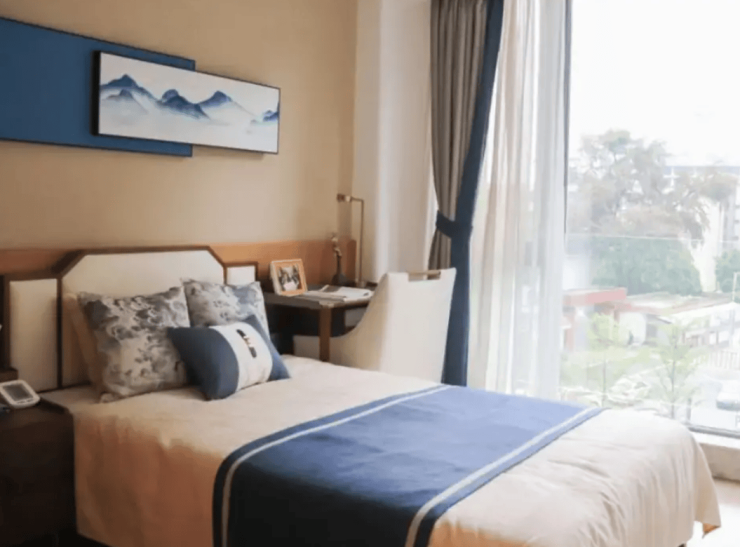 单人间:面积40—58平方米,配备独立卫浴、智能家居系统及紧急呼叫装置,私密性与品质感兼备。