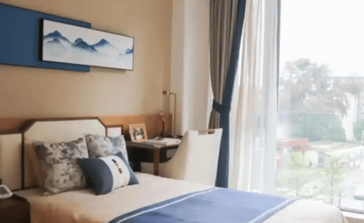 居住空间涵盖单人间、双人间、一房一厅及大二房一厅等多样化房型,面积从32平方米至105平方米不等。单人间配备独立卫浴、智能家居系统及紧急呼叫装置,适合追求隐私的长者;双人间宽敞舒适,共享起居空间与独立卫浴,兼顾性价比与社交需求;套间含独立厨房、阳台及智能家居系统,支持家属陪护或短期居住。全屋采用适老化设计标准:防滑地板、弧角家具、感应夜灯全覆盖;卫浴空间配备步入式恒温淋浴房、坐式淋浴器及拉绳警报器;照护型公寓额外增设可三段调节的进口护理床与床头供氧设施,充分保障居住安全。