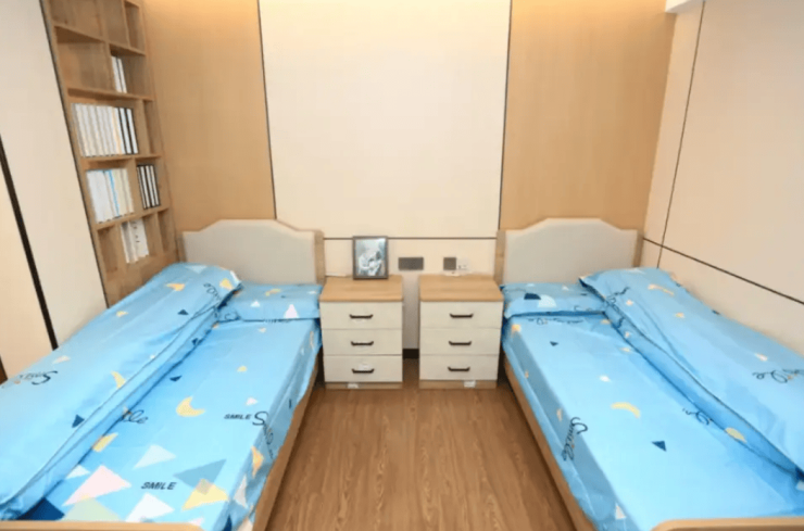 机构规划多种房型,涵盖单人间、双人间、三人间及四人间,精准适配不同长者的居住需求与经济考量。所有房型均遵循45项适老化设计标准,配备防滑系数≥0.85的地胶、L型扶手、床头紧急呼叫装置等设施,全方位规避居住风险。单人间注重隐私保护,配备独立卫浴与专属储物空间;多人民型兼顾陪伴与性价比,采用隔音玻璃隔断,减少相互干扰,每间房均配套基础生活设施,兼顾实用性与舒适度。