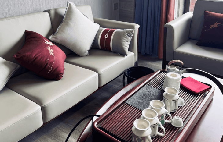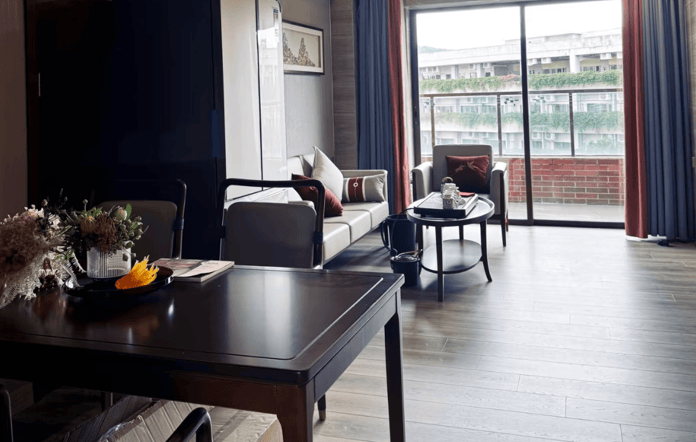 地面铺的是防滑系数≥0.85的专业地胶,走廊装了双层L型扶手,卫生间有智能马桶和倾斜镜;房间配了双制空调和负离子空气净化器——广州夏天湿热,这套系统能让室内始终保持26℃的干爽;更贴心的是,每个房间都有独立卫浴和观景阳台,部分套房还设了独立厨房——“我爸爸喜欢自己煮老火汤,这里连电磁炉都配好了!”阿珍笑着说。