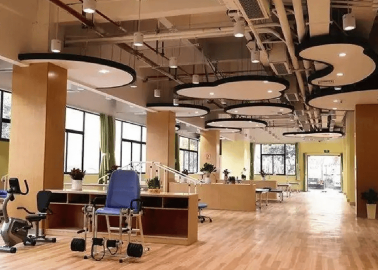 建筑整体采用"传统与现代共生"设计理念,青砖黛瓦的外立面融入广绣、牙雕等岭南非遗元素,内部空间则贯彻现代适老化标准。公共区域走道宽度达1.8米,地面铺设防滑系数≥0.85的PVC胶,墙面安装适高扶手;所有转角均做圆角处理,减少碰撞风险;全院覆盖24小时监控系统,重点区域设置毫米波雷达跌倒监测装置。